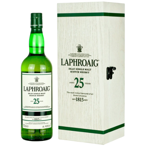 Laphroaig Islay Single Malt Scotch Whisky 25 Years Old is a premium whisky that is aged for a quarter-century. It is made by the Laphroaig distillery on the island of Islay in Scotland, which is known for producing some of the world’s finest single malt whiskies.