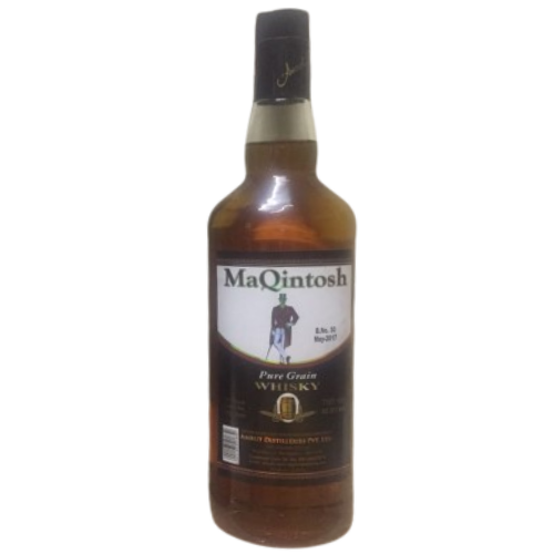 MaQintosh Pure Grain Whisky is a premium Indian whisky produced by Radico Khaitan Distillery. It is made from 100% pure grain, which is distilled and then matured in oak casks to give it its distinctive flavor and smoothness.