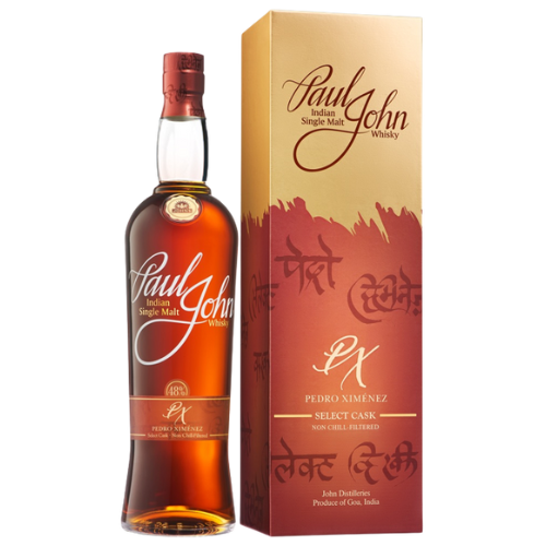 Paul John Indian Single Malt Whisky PX Pedro Ximenez is a premium single malt whisky produced by John Distilleries in India. It is part of the brand’s “Select Cask” series, which includes some of the distillery’s most highly regarded whiskies.